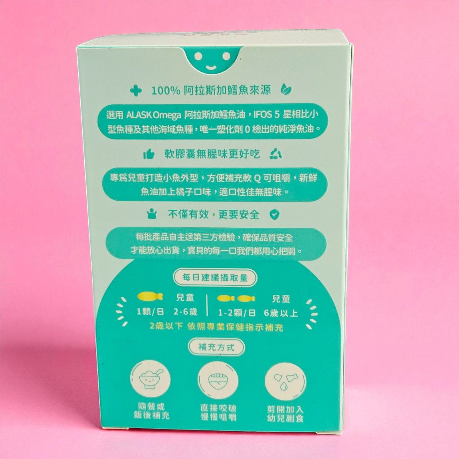 孩子的營養,不能妥協!選用阿拉斯加鱈魚來源,零污染、無塑化劑檢出,搭配黃金比例 DHA:EPA = 2:1,促進孩童專注力與健康發展。採用rTG型態高吸收魚油,更好吸收、不易腥。獨家設計小魚造型軟膠囊,軟Q好咀嚼、孩子一吃就愛上!